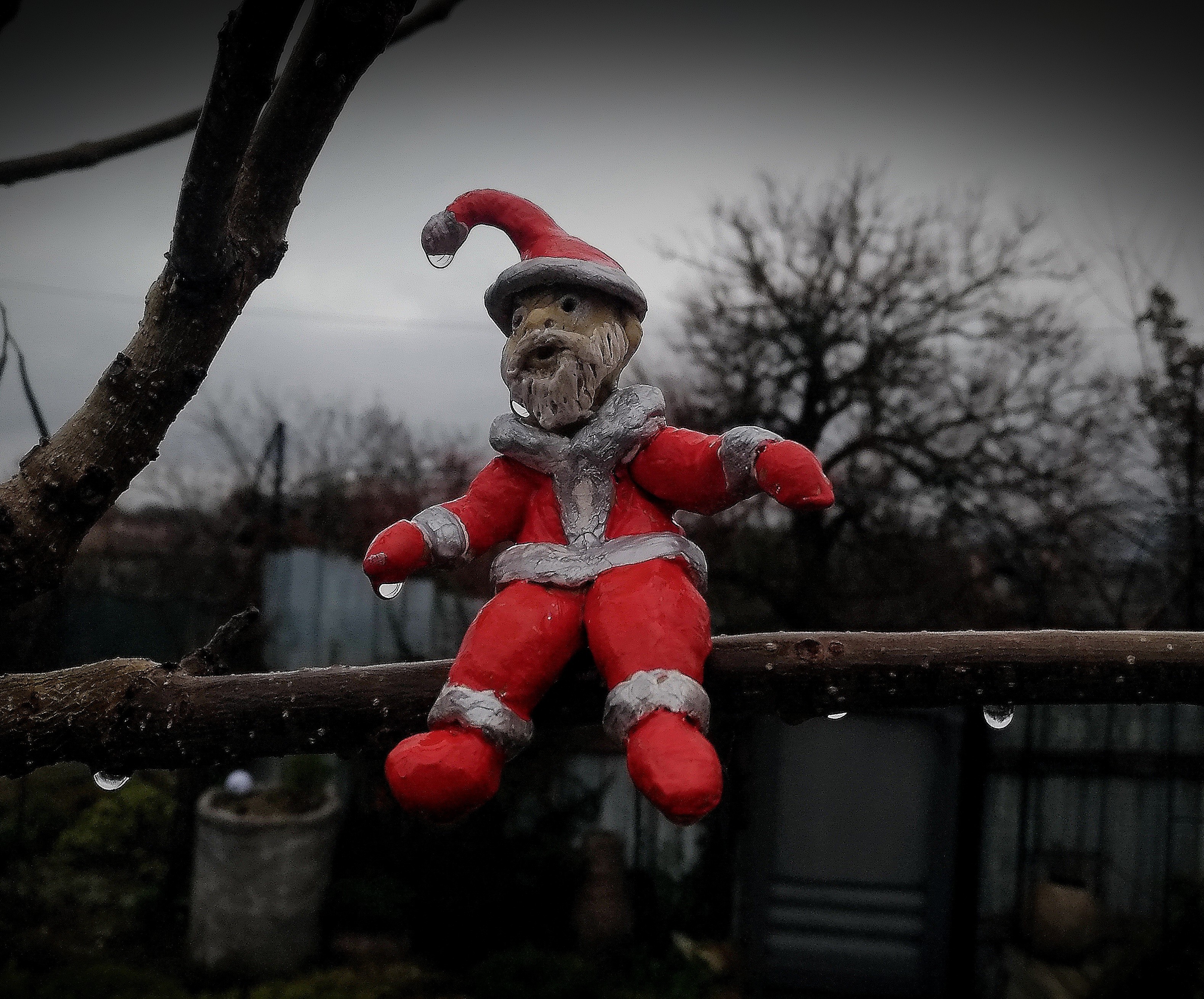 Недобрый Дедушка Мороз вместо снега дождь принёс - вот и мокни сам тогда, тебе, как с гуся, та вода