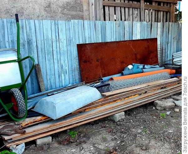 Это доски с опалубки, когда фундамент под большой забор заливали. Они с осени до весны пролежали под дождём и только занимали место. А весной я уже не выдержала, проела мужу плешь, что нужно эти доски куда-то девать
