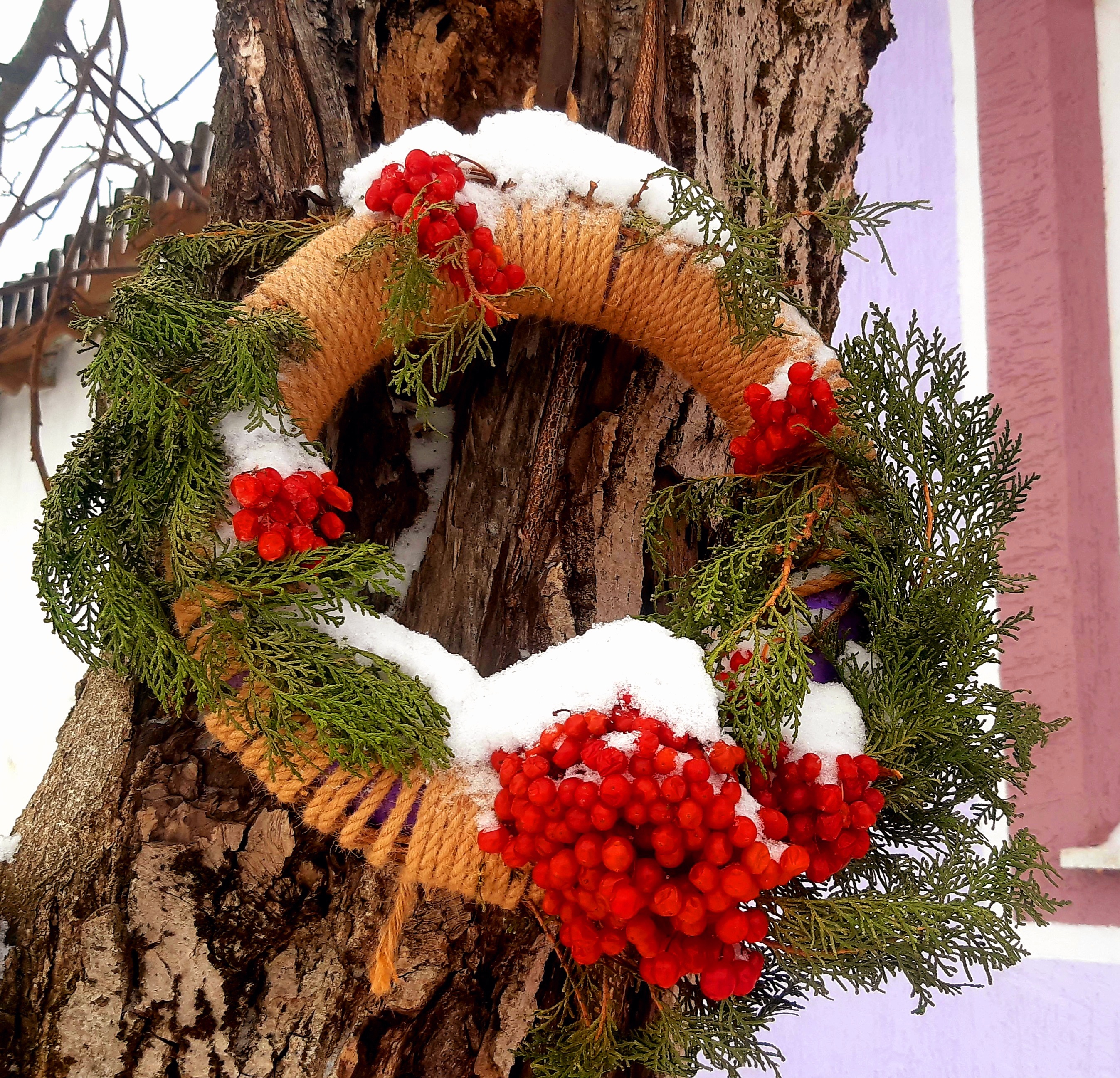 Рождественский венок из можжевельника и калины