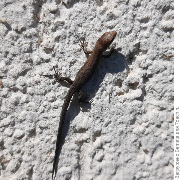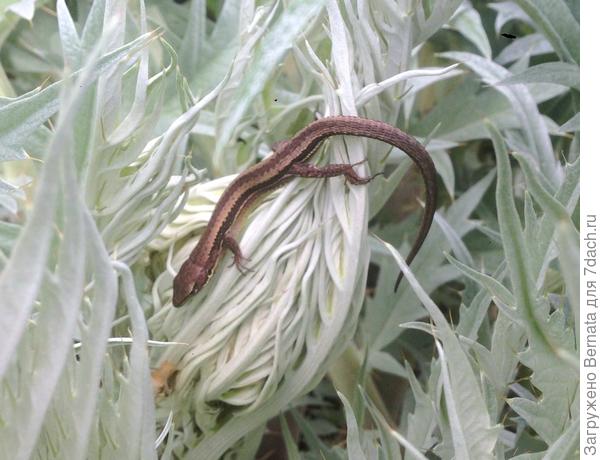 У нас ящерка в парничке живет, перцы от слизней охраняет!
