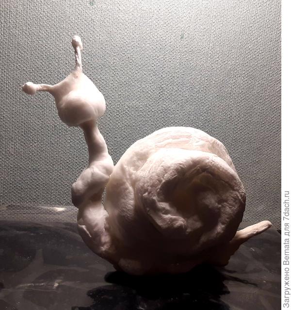 По сути, внутренний слой уже готов, но чтобы скрыть нитки, густо проклеиваем клейстером всю фигурку и скрываем нитки тоненьким слоем ваты, также тщательно его проклеивая. На это уйдёт как раз полпорции клейстера, который мы сварили.