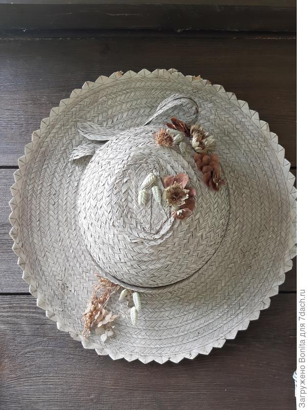 Начну с обычной дамской соломенной шляпы. Даже не помню, как и когда она у меня появилась, но она у меня уже очень давно. Её не люблю и редко надеваю. Наверно поэтому она неплохо сохранилась.🙂 Сзади у нее был большой бант (видимо, для красоты 🙂), совершенно ненужный, я его просто отрезала, от него остались лишь кончики.