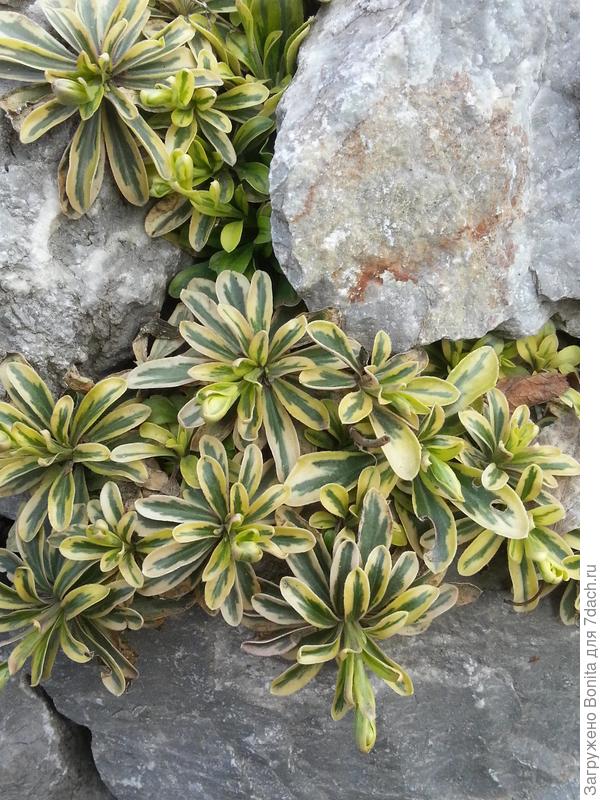 У меня растет еще один арабис Фердинанда 'Old Gold'. Тоже интересное почвопокровное растение с вариегатной листвой и белыми цветками.