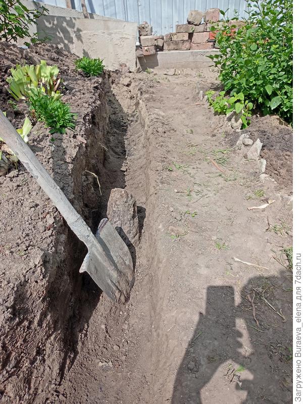 - он расположен вдоль соседнего участка — местами под соседским забором, местами под соседской отмосткой. Причем из-под отмостки постоянно сыплется грунт. Причем грунт — прям чернозем намытый, законсервированный.