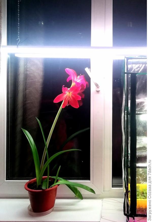 Цветок любит опрыскивания, и я периодически протираю его листья с двух сторон мягкой влажной тряпочкой для удаления пыли.В период покоя цветок нужно поливать редко, но так, чтобы земля сильно не пересыхала, я поливаю примерно один раз в две недели. Убирать в тёмное место нельзя, луковица хоть и немного, но функционирует, а для этого ей нужен свет.