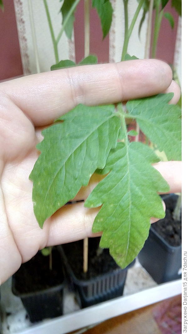 Добрый день. Ранее (в начале июня) обращалась за помощью: мельчают верхние листья томатов по сравнению с нижними, с обратной стороны молодых листочков — фиолетовые жилки. Внесла под корень монофосфат калия, сульфат магния. Удобрила по листу...