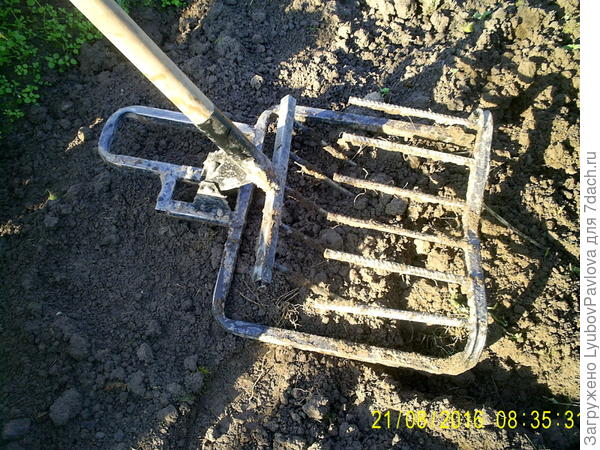 Получается лёгкая рыхлая почва, кстати, при помощи этой лопаты я избавилась от длинных ползучих корней многих сорняков. Вообще стараюсь содержать грядки в чистоте (мульчирую посадки, рыхлю на ранних стадиях роста овощей, сажаю сидераты), так что сорняков в грядках у меня практически нет.