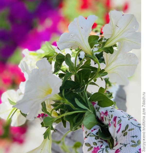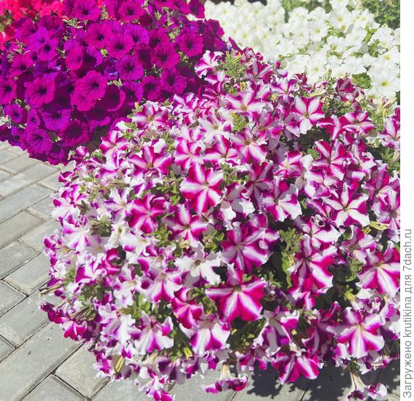 И если постоянно прищипывать боковые стебли у таких петуний, то ни каскада нормального, ни шарика не получить.