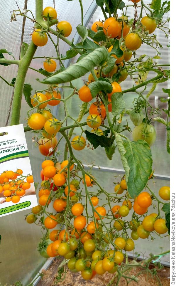 Я сама пробовала выращивать разные сорта томатов черри, о некоторых писала в публикации Мелкоплодные томаты: проверенные сорта, но 'Ildi' меня просто обворожил. Наверное, он никогда не покинет мою теплицу. Это индетерминантный сорт, за сезон вырастает до 180-190 см. Выращивая в первый раз, я следовала рекомендациям и оставляла 3-4 кисти на растении, после этого вершковала. В другие годы попробовала не ограничивать куст, и он оправдал надежды: стабильно рос и плодоносил в теплице до конца октября, пока последние помидорки не были собраны перед заморозками. Другие семидачники со мной солидарны: посмотрите, какие фото они сделали.