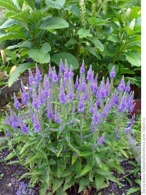 Прямыми высокими свечками синих и голубых тонов обладает в. большая (ее высота до 70 см), распускаются они весной. Сорта — 'True Blue', 'Shirly Blue', 'Royal Blue'. Цветет синим и в. нитевидная, но выглядит она совершенно иначе: это нежное стелющееся растение с одиночными цветками. Перечисленные виды вероник малоуходны. Почва им подходит обычная садовая, предпочтительнее — с щелочной реакцией. Местоположение лучше выбирать солнечное или полутень.