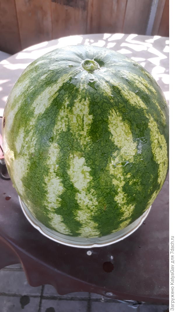 До прошлогоднего не дотянул 100 грамм. Арбуз очень сахаристый и сладкий, внуки в восторге и мы тоже.