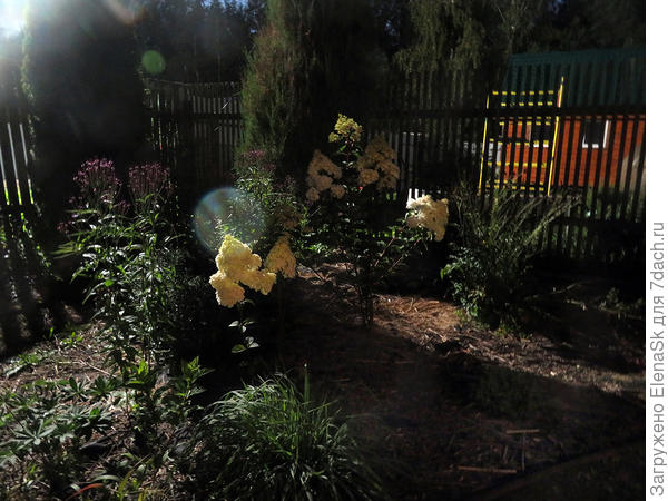 У меня уличный фонарь на дороге — он освещает половину участка по ночам, это при свете фонаря ночью: