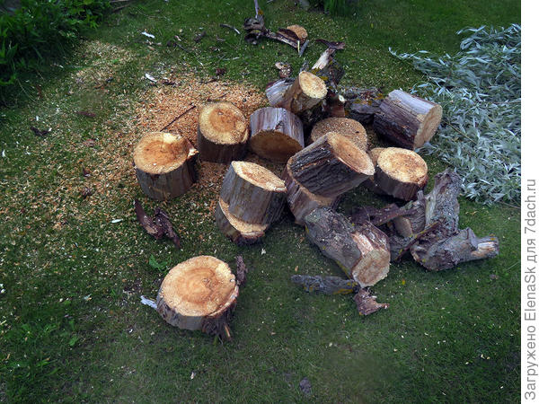 Выдохнула — пошла ствол на чурки резать. Отпилила ветки, потом — ствол. Чурбаки делала невысокими, зная свое умение топором махать: