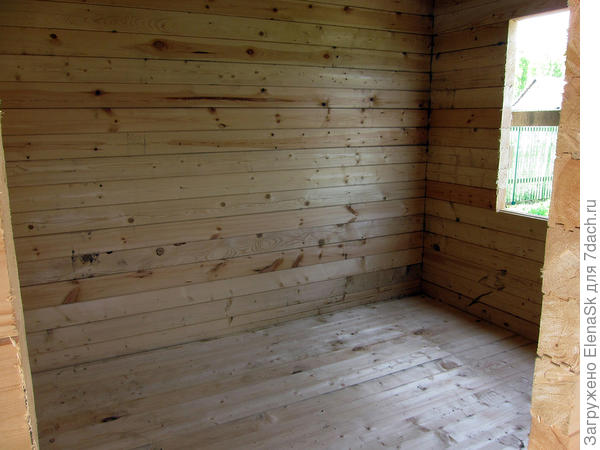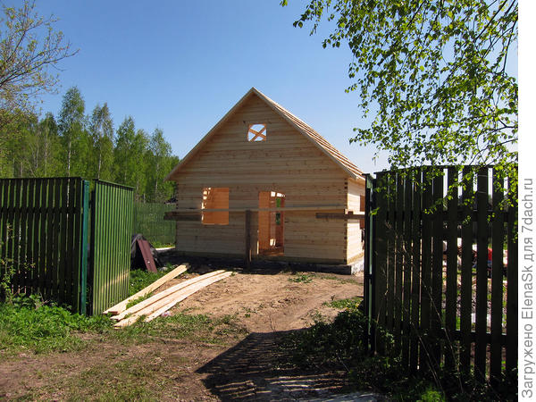 Снимала чуть позднее перед отъездом, когда приехала, два оконных проема смотрели на север в забор. Пыталась спорить — есть же у них план, там указаны все проемы. Они взяли его в руки, повернули — мы так и делаем… С трудом удалось заставить их разобрать три венца и окна перенести, а дверной проем — «Вам так будет удобнее — въехали и вошли»...