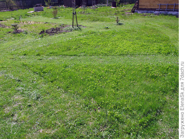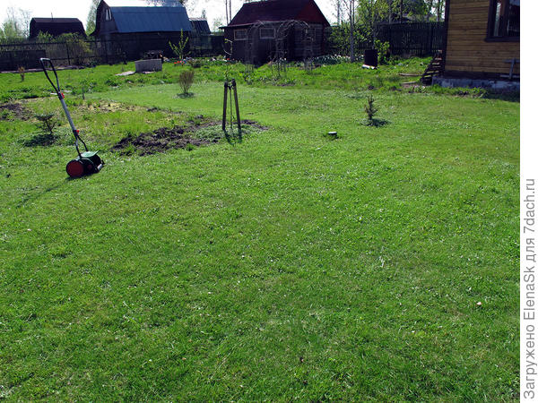 И где мы эту красивую линию будем рисовать? Ориентиров никаких… Не знаю — почему, но я никогда не стригу газоны как люди, хожу с газонокосилкой куда придется, но постепенно все-таки выстригаю все.