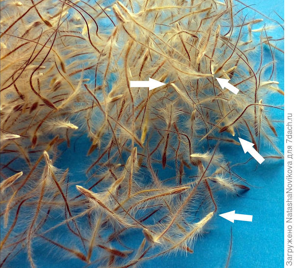 Я прозевала сбор семян, когда появилась на даче — уже все разлетелось, и эти семена были с одного цветка, с которого еще не все разлетелось, предположительно с этого: