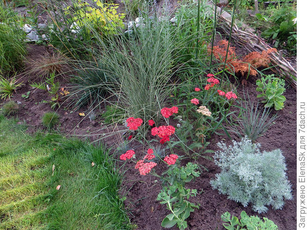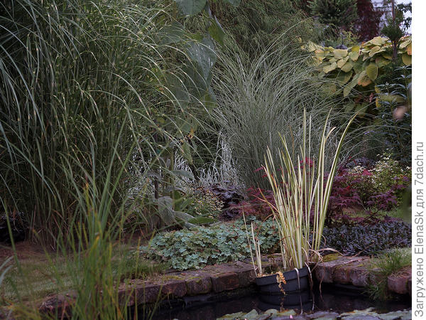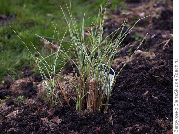 Я тогда не знала, что мискантусы не переносят осенней пересадки — он у меня ушел в первую же зиму, и по весне я туда посадила новый, от Ирины привезенный.