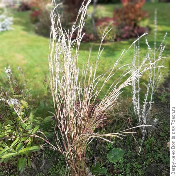 А это отцветшая вербена на фоне вейника остроцветкового осенью: