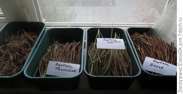 Срезала семена вербены всех трех цветов (пакеты под нее дома подписала). В этот раз срезала много белой, в этом году один ее куст вымахал огромным, выше меня размером и цвела очень обильно: