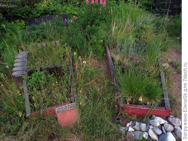А к осени школка заросла, а я туда за сезон столько всего напихала — и все в сорняках! В начале осени начала чистить, вынимала и пропалывала все, что в горшках, очищала грунт и вновь все прикапывала: