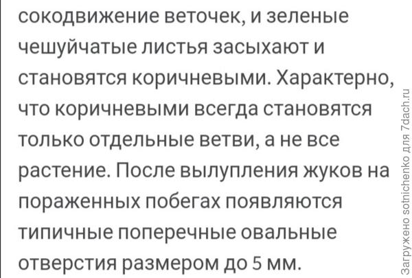 Против радужной кипарисовой златки работают препараты-инсектициды с действующим веществом бифетрином: балазо, или талстар, или антихрущ. Вообще очень серьезная проблема для кипарисовых, которую нельзя недооценивать.