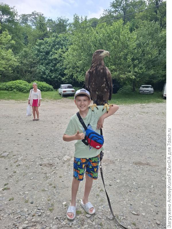 Вот молодой беркут, насколько я понял. Подруга бывшая отдыхала с детьми в Адлере и сына сфотографировала с этой шикарной птицей. Кстати, беркут охотится даже на волков! Шикарная птица!