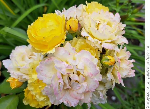 Поддерживаю версию, что это романтическая роза ‘Abraham Darby’. Вот здесь на сайте есть и информация, и фото розы в коллекции Никитского ботанического сада: Источник: 15 лучших романтических роз