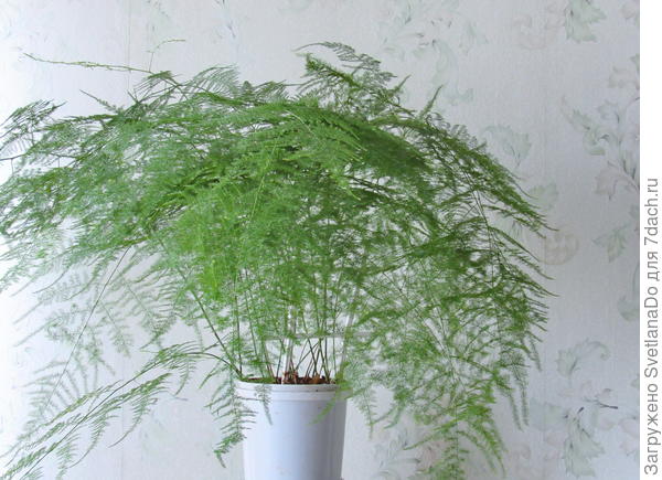 Аспарагус очень любит обильный и регулярный полив. Желательно наливать теплую воду в поддон. Следующий полив производить, когда просохнет верхний слой земли.Аспарагус обожает комплексные минеральные подкормки. Весной и летом нужно подкармливать растение 1 раз в неделю. Осенью и зимой количество подкормок сокращаем до 2 раз в месяц.