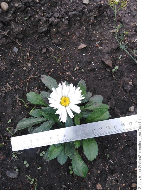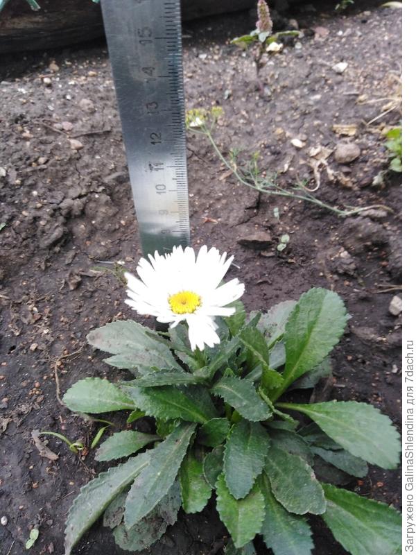 В высоту моя ромашка совсем небольшого размера, всего чуть больше 7 см.