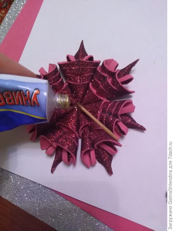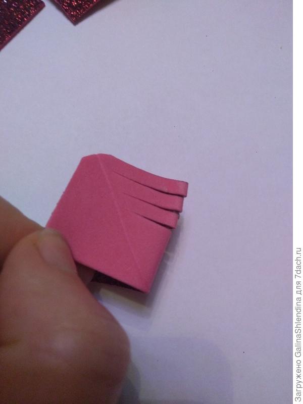 Вставляем маленькую деталь вовнутрь другой и склеиваем. Так делаем со всеми 7 деталями.