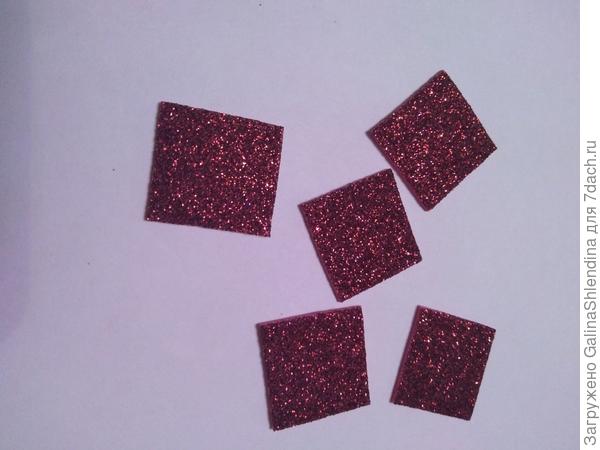 Нарезаны детали из фоамирана 2,5х2,5 см: