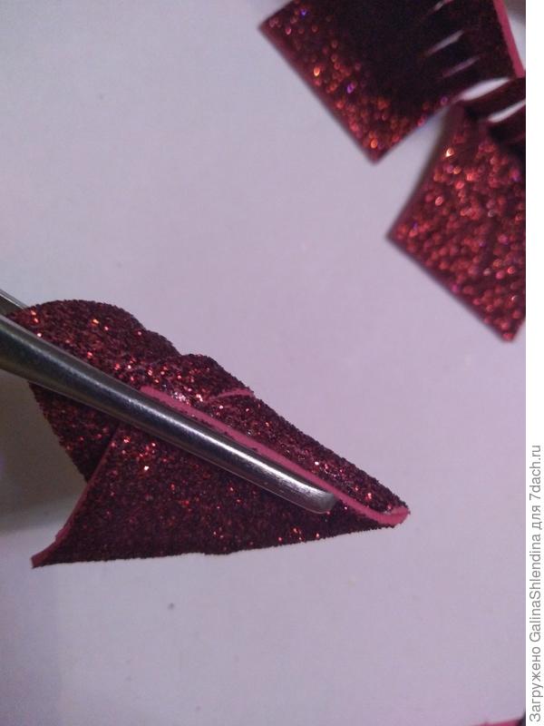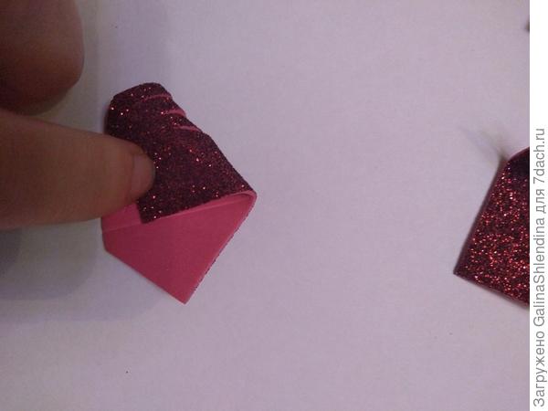 Переворачиваю листик блестящей стороной к себе и сгибаю оставшуюся часть. Приклеиваю универсальным клеем.