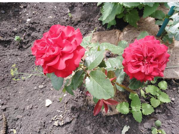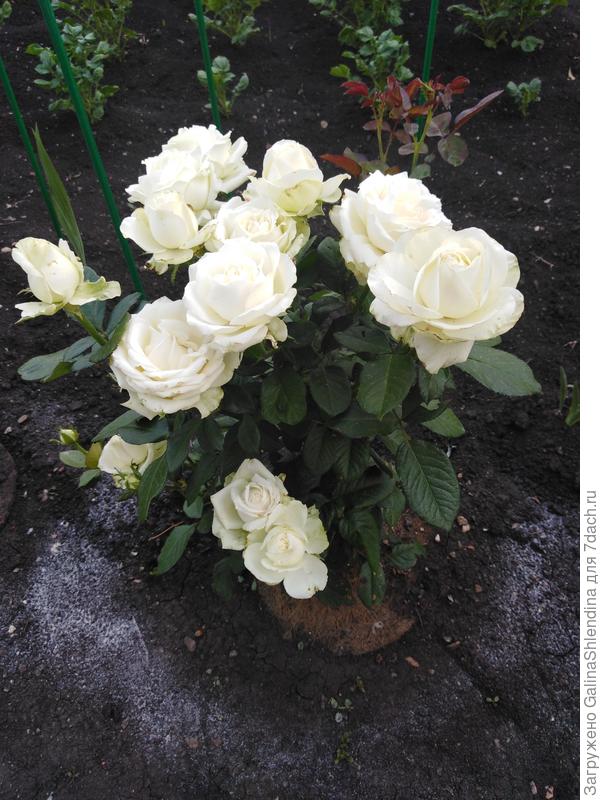Вокруг розочек положила кокосовые круги. Они прекрасно справляются с функцией мульчи.
