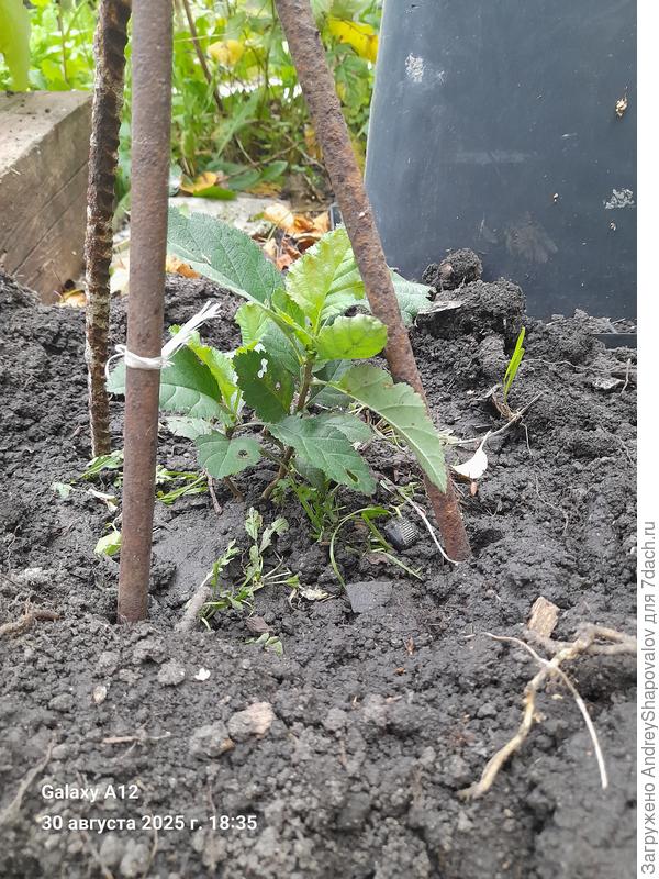 Осенью я оставил себе десять штук, а ещё через год, когда растения выросли более полуметра, один из них пересадил сразу на постоянное место, положив в посадочную ямку дренаж и перегной.