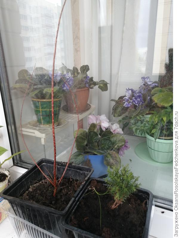 Для этого садовыми ножницами аккуратно нарезаем с материнского куста однолетние или двухлетние (по желанию) черенки длиной около 30-40 см. Если оказалось, что срезать черенки вам нечем (как часто бывает, случайно увидели куст и захотели себе такое растение), можно использовать маленькую хитрость – в более морозные дни ручной слом черенков получается аккуратным, без сильного расщепления древесины. В этом случае ломаем веточку вперед – назад, влево – вправо, а ровный срез делаем уже дома. Готовые черенки помещаем в трёхлитровые банки с водой по 3-5 шт. в каждую. В доме они должны находиться (до высадки) на хорошо освещенном месте, но не под прямыми солнечными лучами.