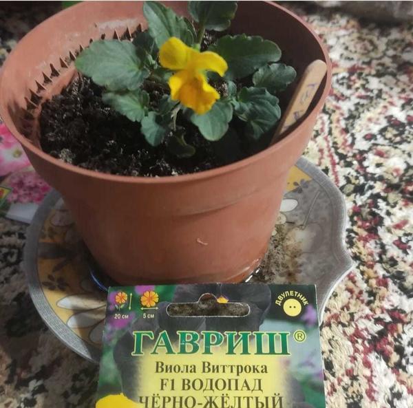 здравствуйте, я посадила в этом году Виолу Виттрока от Гавриш, из 5 семян взошла только одна, немного подросла и стала цвести только желтыми цветами, хотя на упаковке другой цвет указан. не сказала бы что прямо ампельная, такая крохотулька, может попозже пустит плети. грунт хороший, для цветов, добавляю торф.