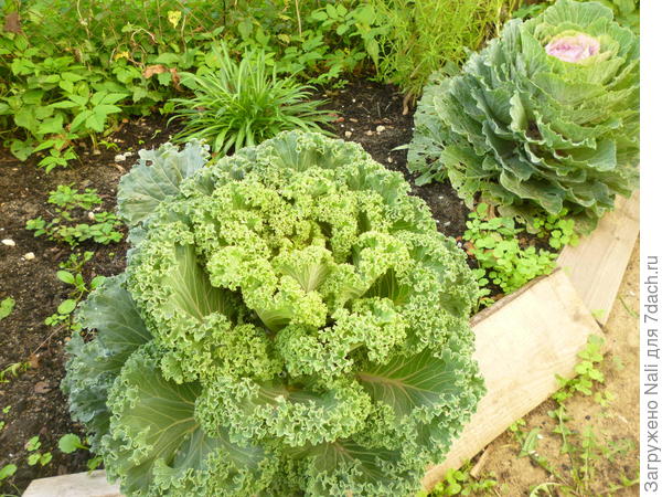 Декоративная капуста наращивает увесистую розетку листьев, которая порой не удерживается на стебле