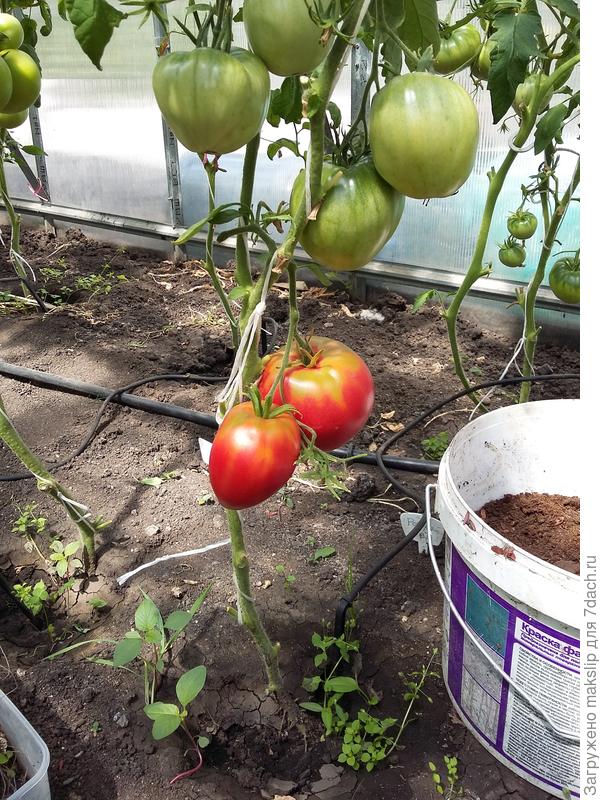 А про нижние листья у помидоров — увы, это только для теплиц с вертикальным выращиванием. Рано я их ободрала. Но уже ничего не поделать. Пишу для остальных. В открытом грунте удаляют только под кистями, которые уже краснеют, когда плоды набрали свой размер полностью. Лист — это не только продукт фотосинтеза, но и кладовая питательных веществ. Растение, когда ему чего не хватает, вытягивает из листа вверх нужное, поэтому нижние листья отмирают.