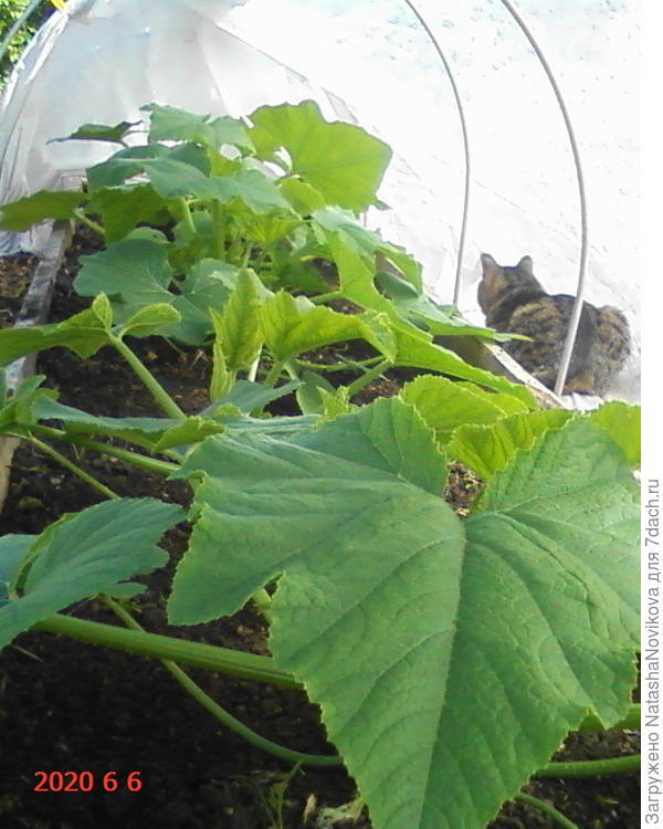 Поставила сверху дуги с укрывным и ещё сверху кинула старую драную пленку
