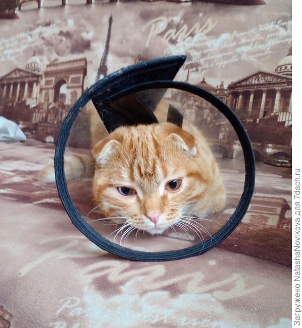 Маркизу вчера бубенчики отчикали, и такой воротник ему теперь дней 5 носить, чтобы не разлизал шов.