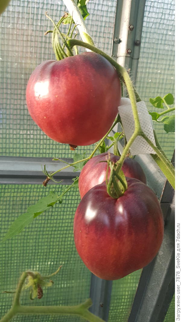 Как уже ранее писала в комментарии в топике о томатных итогах сезона "Томатные итоги и выводы": сезон 2024 (там и фото Пурпурного сердца уже после сбора), гномов в ОГ пристроила полулежа только 13 июня (это очень поздно, даже для нас), переросли они изрядно (холодно было до того, грунт прогревала), первые кисти сбросили или я их сама удалила при высадке, т.к. нужно было дать им возможность хоть немного оправиться. Поливы были редкие и обильные холодной водой из скважины. Но, гномы при таком режиме ухода (а его было мало: небольшая формировка, удаление листьев только до развилки, подвязка, полив), чувствовали себя получше тепличных. Не жировали, а упорно выполняли свой жизненный план.