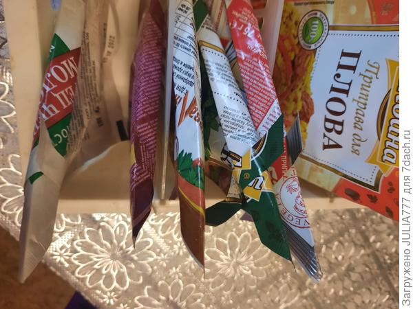 Не нужно искать скрепки, прищепки, резиночки или пересыпать каждую пряность в отдельную банку с крышкой. Только ножницы и знание этого способа :). Специи не просыпаются и не выдыхаются.