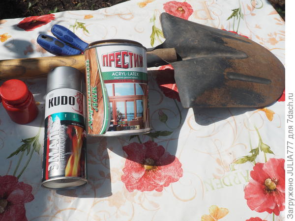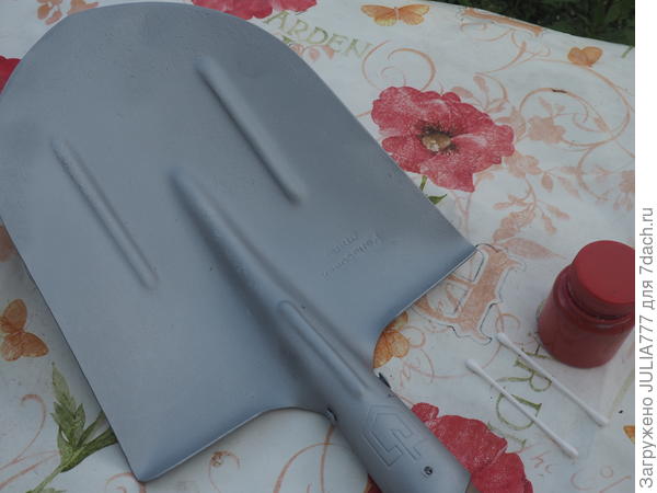 Лопата садовая старая, очень тяжёлая, с короткой ручкой, ржавая и тупая. Спросом она не пользовалась ни у кого из членов семьи. Стояла мешалась только. Ржавчину чуть зачистила.