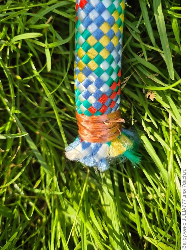 Концы шнура можно обжечь на огне. Так он не будет распускаться. Я крепко обмотала верёвкой.