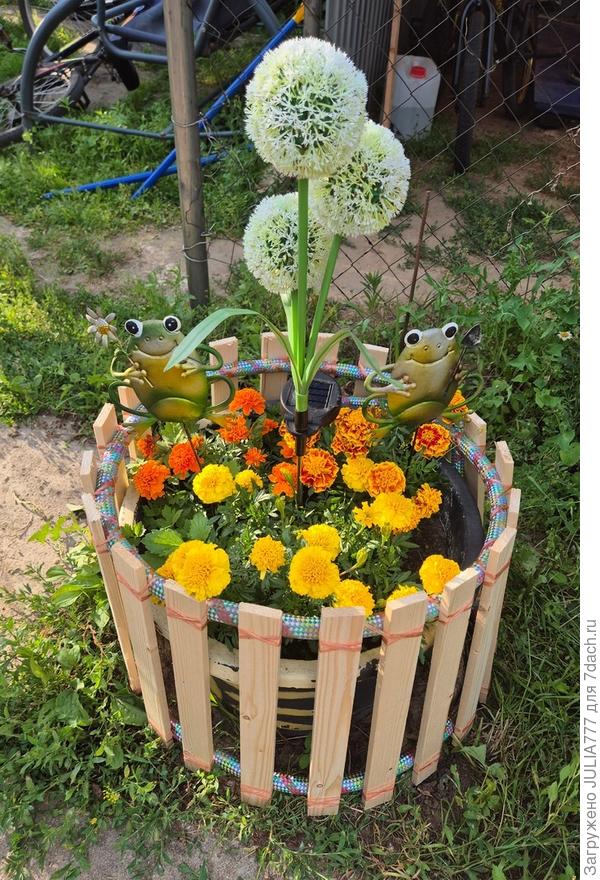 Вот так можно быстро украсить пространство и скрыть несовершенства старой клумбы-вазона.