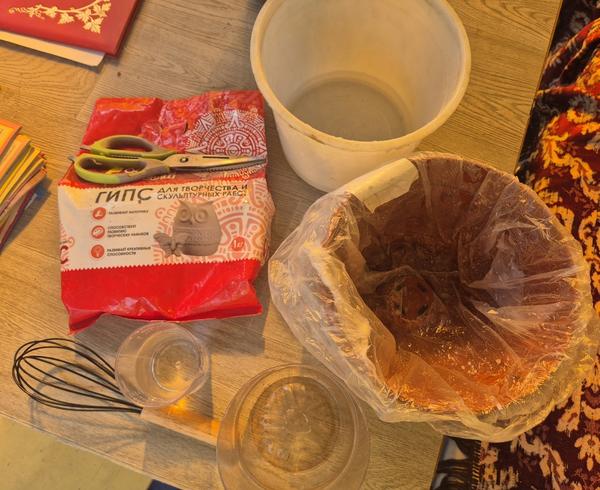 Развела гипс с водой. Здесь есть такое правило: на килограмм сухого гипса максимум 440 мл воды. Можно чуть меньше, и будет погуще масса. Больше воды нежелательно.