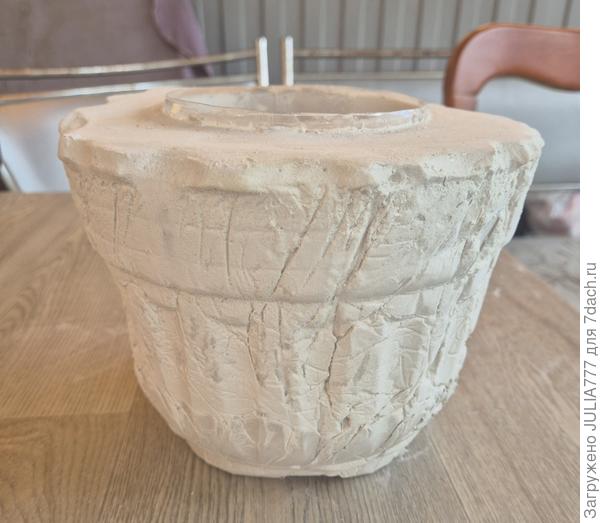 Дождалась полного застывания моей формы. Время зависит от величины изделия и степени разведения гипса. У меня ушло пять дней и пять килограммов гипса.