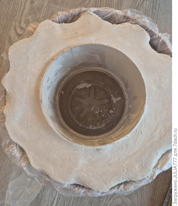 Мне захотелось сделать волнистый край. Для этого, когда смесь хорошо схватилась, но была ещё пластичной, с помощью бумажных салфеток сформировала местами волну.