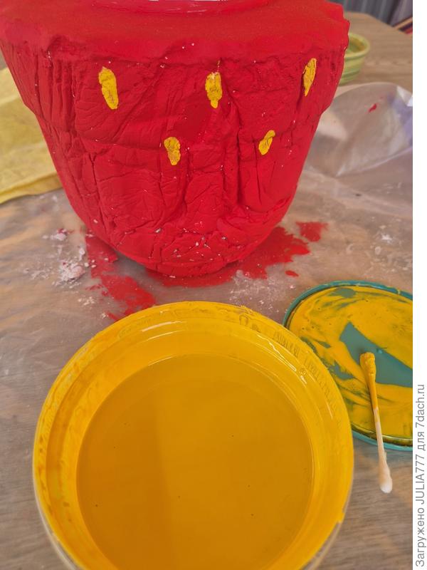 Краски взяла акриловые. Ярко-красную и немного жёлтой