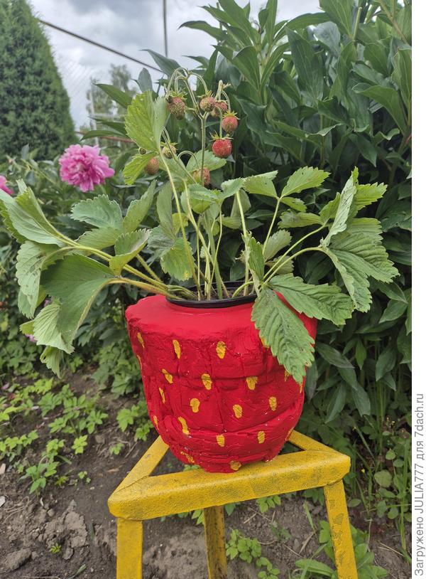 А я представила, как мило будет смортеться не с цветами, а просто с зелеными крупными листьями типа пионов — настоящая клубничка)))))